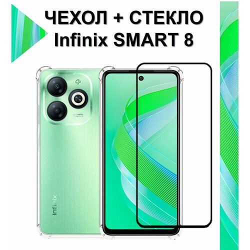 Комплект 2 в 1: Прозрачный чехол с защитой камеры и углов + полноэкранное стекло для Infinix SMART 8 / Инфиникс Смарт 8 / Инфиникс