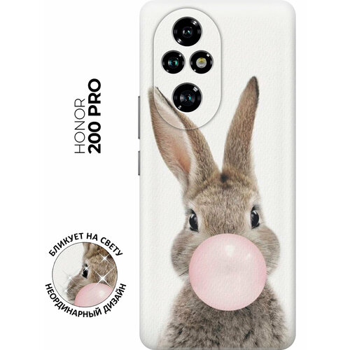Силиконовый чехол на Honor 200 pro с принтом "Заяц с жвачкой"