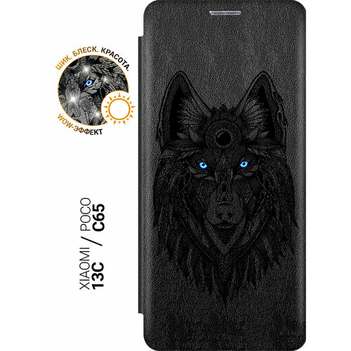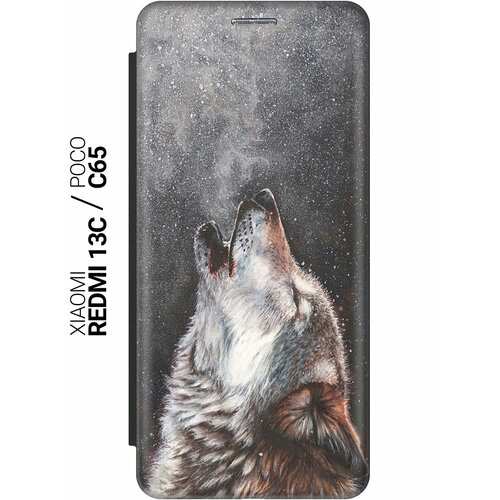 Чехол-книжка на Xiaomi Redmi 13C / Poco C65 / Сяоми Редми 13С / Поко С65 с рисунком "Grand Wolf" черный