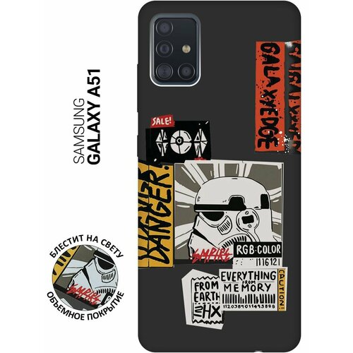 Матовый Soft Touch силиконовый чехол на Samsung Galaxy A51, Самсунг А51 с 3D принтом "Stormtrooper Stickers" черный
