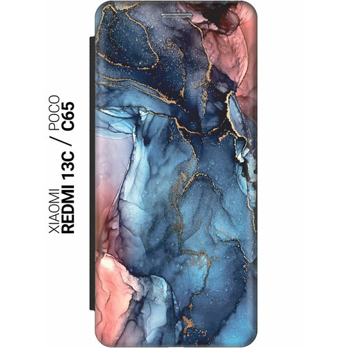 Чехол-книжка на Xiaomi Redmi 13C / Poco C65 / Сяоми Редми 13С / Поко С65 с рисунком "Сине-розовый мрамор" черный