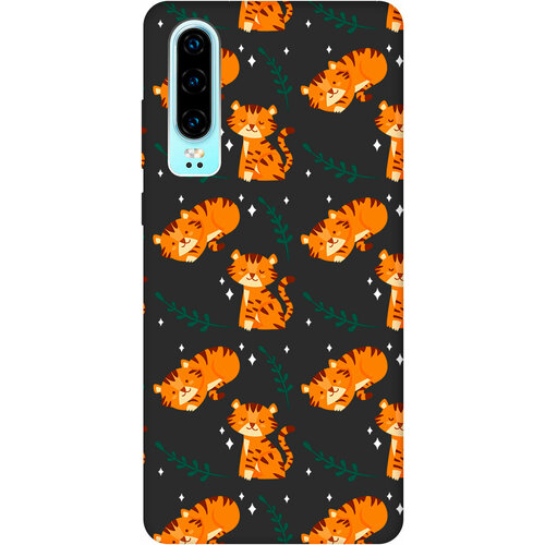 Матовый Soft Touch силиконовый чехол на Huawei P30, Хуавей П30 с 3D принтом "Tigers" черный