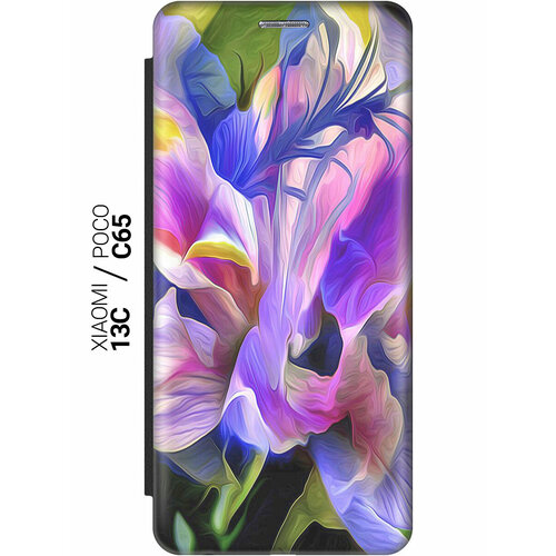 Чехол-книжка на Xiaomi Redmi 13C / Poco C65 / Сяоми Редми 13С / Поко С65 с рисунком "Цветочная абстракция" черный