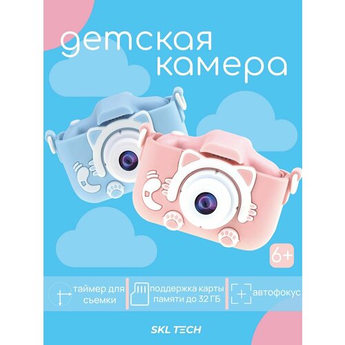 Детский фотоаппарат Котик с селфи-камерой и играми + карта памяти 8 ГБ