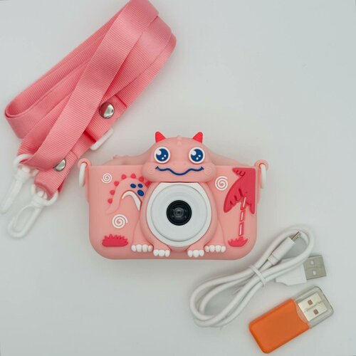 Ударопрочный детский фотоаппарат для девочек 1080p Full-HD высокого качества со встроенной памятью цифровая камера с 3 играми и селфи, Дракон Розовый