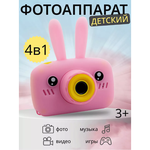 Развивающий детский цифровой фотоаппарат Зайчик. Фотоаппарат игрушка 3 в 1: фото, видео, игры. Розовый