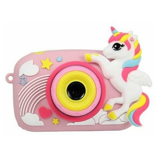 Детский цифровой фотоаппарат с селфи камерой и головоломкой для девочки, мальчика, игрушечная фотокамера для детей ударопрочная 1080p Full-HD, Единорог для ребенка
