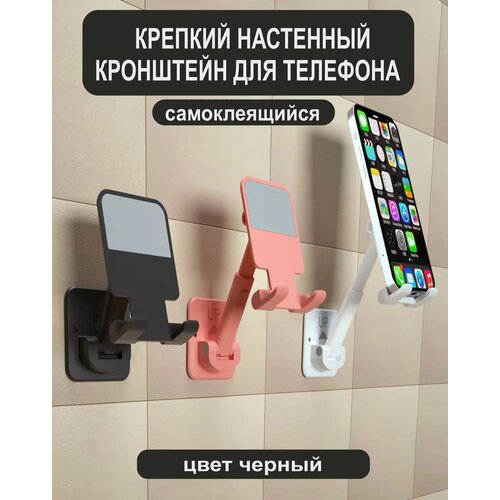 Подставка для телефона настенная, держатель с регулируемым наклоном и вылетом для смартфона или планшета черная складная подставка