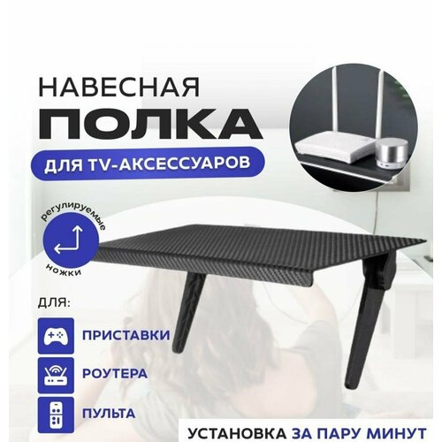 Полка на телевизор для приставки, ресивера, пульта, универсальная, черная.