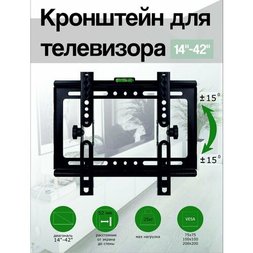 Кронштейн для ТВ 14"-42" настенный, наклонный, до 25 кг