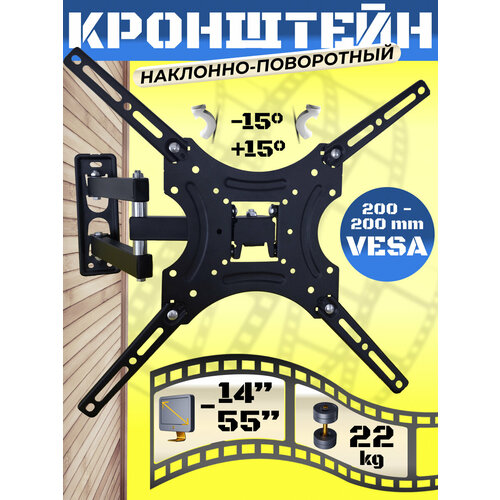 Кронштейн для телевизора настенный поворотно-наклонный диагональ 14"-58", нагрузка 22 кг