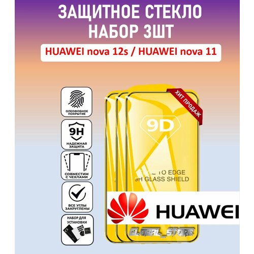 Комплект 3 в 1: Защитное полноэкранное стекло для HUAWEI nova 12s / nova 11 ( 3 шт ) Хуавей нова 12с / Хуавей нова 11 Full Glue