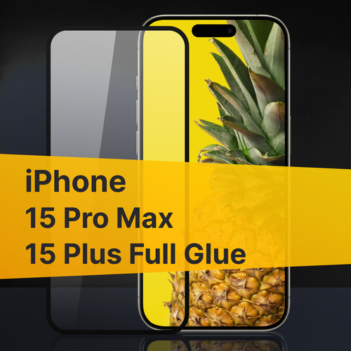 Противоударное защитное стекло для телефона Apple iPhone 15 Pro Max и 15 Plus / Полноклеевое 3D стекло с олеофобным покрытием на смартфон Эпл Айфон 15 Про Макс и 15 Плюс / С черной рамкой