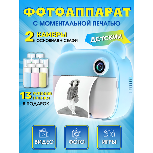 Детский фотоаппарат TechBazar, мгновенная печать, голубой/белый, 48 Мп, аккумулятор