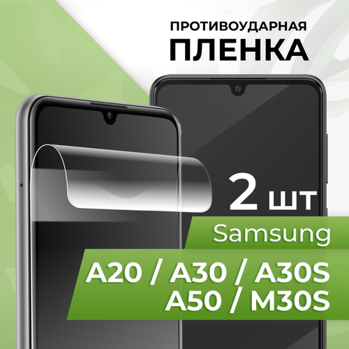 Комплект 2 шт. Глянцевая противоударная пленка для телефона Samsung Galaxy A20, A30, A30S, A50, M30S / Защитная гидрогелевая пленка на смартфон Самсунг Галакси А20, А30, А30С, А50, М30С