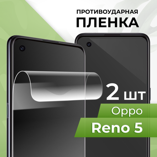 Комплект 2 шт. Глянцевая противоударная пленка для телефона Oppo Reno 5 / Защитная гидрогелевая пленка на смартфон Оппо Рено 5