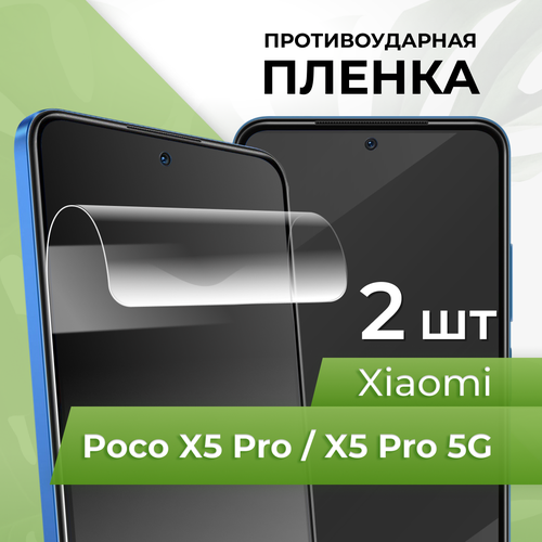 Комплект 2 шт. Глянцевая противоударная пленка для телефона Xiaomi Poco X5 Pro / Защитная гидрогелевая пленка на смартфон Сяоми Поко Х5 Про