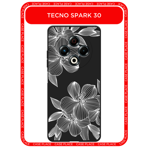 Черный матовый чехол на Tecno Spark 30 / Текно Спарк 30 с принтом Крокус