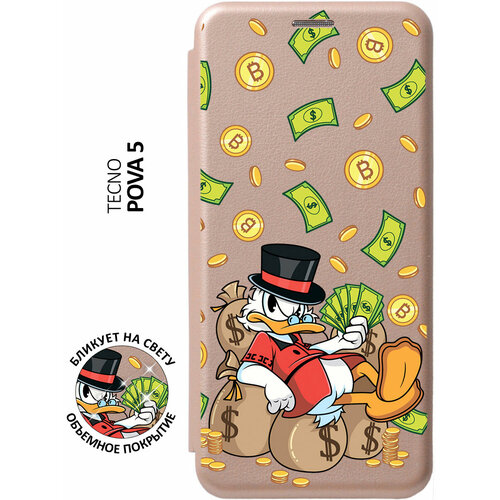 Чехол-книжка Rich Scrooge на Tecno Pova 5 / Техно пова 5 с 3D эффектом золотой