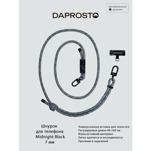 Подвеска шнурок на плечо для чехла с регулировкой длины DAPROSTO Midnight Black 160 см