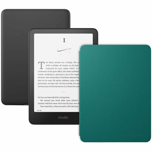 Электронная книга Amazon Kindle PaperWhite 12 2024 16Gb Black (рекламная версия) с обложкой Fabric Green