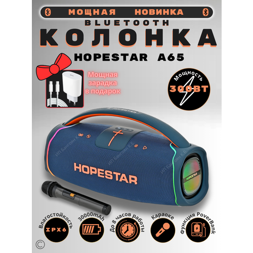 Беспроводная музыкальная колонка Bluetooth с микрофоном - А65 Blue