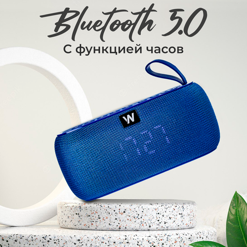 Портативная колонка bluetooth 5.0, WALKER, WSP-150, 2 динамика по 5Вт, блютуз, с подсветкой беспроводная, колонка музыкальная как jbl акустика, синяя
