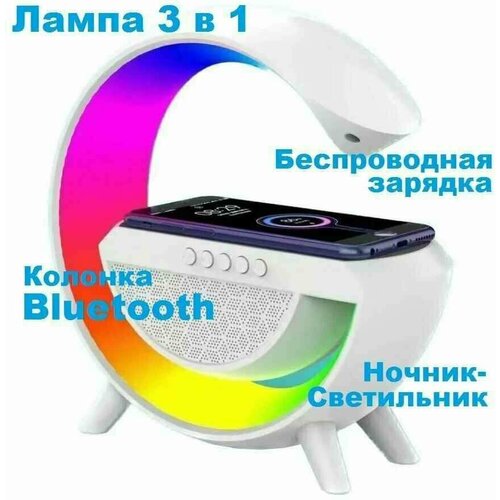 Светильник/ Ночник c беспроводной зарядкой для телефона/Bluetooth-колонка, FM радио