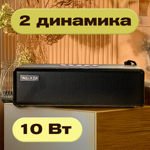Портативная колонка bluetooth 5.0, WALKER, WSP-110, 2 динамика по 5Вт, блютуз колонка беспроводная, колонка музыкальная как jbl акустика, черная