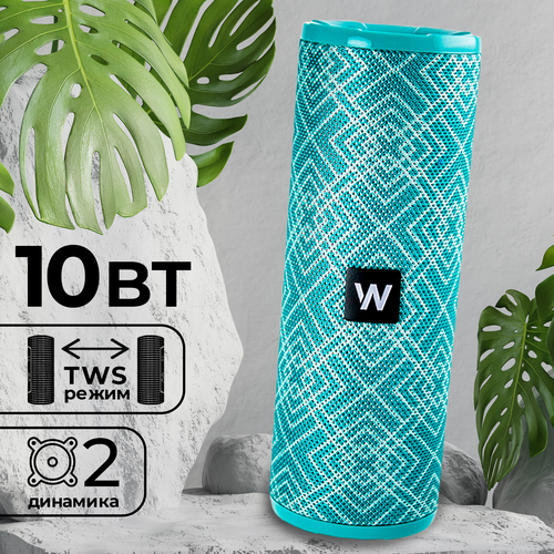 Портативная колонка bluetooth 5.0, WALKER, WSP-110, 2 динамика по 5Вт, блютуз колонка беспроводная, колонка музыкальная как jbl акустика, голубая красный, черный, бирюзовый, серый, синий, голубой, зеленый