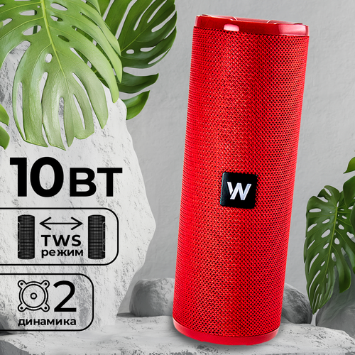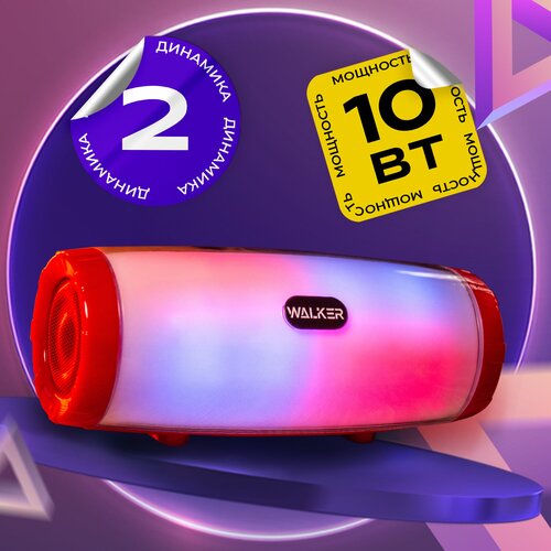 Портативная колонка bluetooth 5.0, WALKER WSP-120, 2 динамика по 5Вт, блютуз, с подсветкой беспроводная, колонка музыкальная как jbl акустика, красная