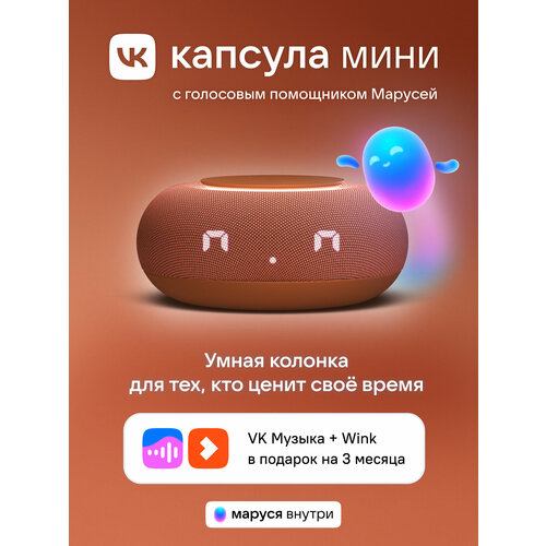 Умная колонка VK Капсула Мини с голосовым помощником Марусей, MRC02, Терракотовая, 3 месяца подписки VK + Wink в подарок