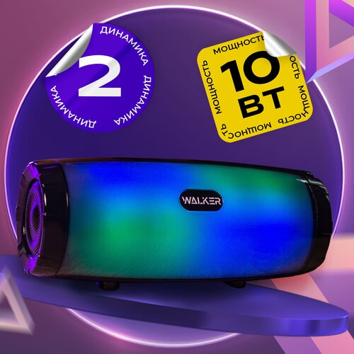 Портативная колонка bluetooth 5.0, WALKER WSP-120, 2 динамика по 5Вт, блютуз, с подсветкой беспроводная, колонка музыкальная как jbl акустика, черная