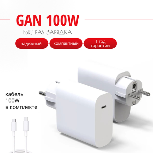 Зарядное устройство с быстрой зарядкой PD 100 Вт, 5-20В/ 5A Wattico Super Charge GaN блок питания для ноутбука, айфона, самсунга, xiaomi