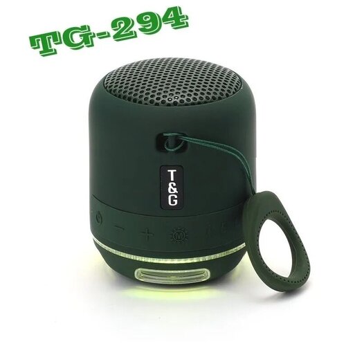 Мини беспроводная колонка T&G TG-294 с LED подсветкой, зеленая
