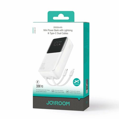 Внешний аккумулятор JOYROOM Mini Power Bank с двумя кабелями Lightning и Type-C 30w, емкость 20 000 мАч