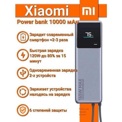 Внешний аккумулятор повербанк Xiaomi Power Bank 10000mah, With Built-in Cable 165W с ультра быстрой зарядкой