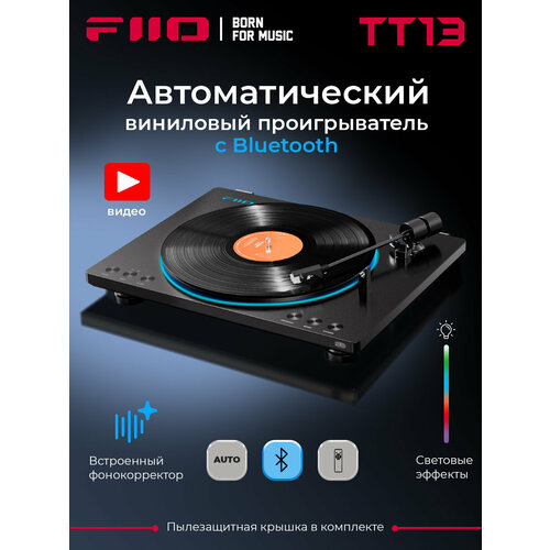 Виниловый проигрыватель FIIO TT13 BT (F3491T) black, Bluetooth, встроенный фонокорректор, управление с пульта, световые эффекты