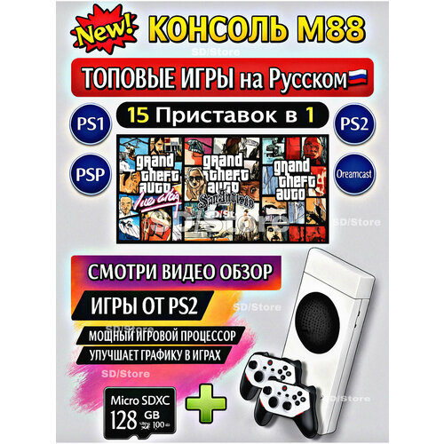 Игровая приставка M88 128 ГБ, портативная консоль , топовые игры на русском Ps2 Psp Ps1