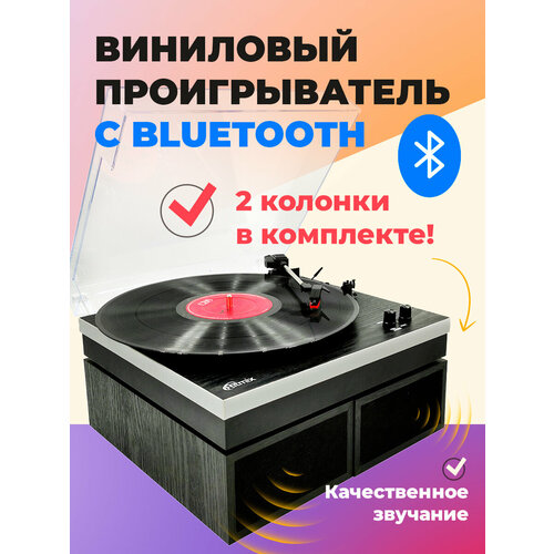 Виниловый проигрыватель Reproductor RP-LPX500, прямой тонарм, Bluetooth, чёрный