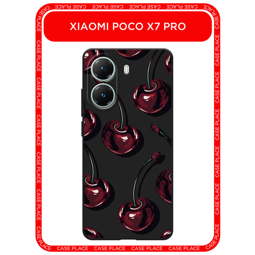 Черный матовый чехол на Poco X7 Pro / Поко X7 Про с принтом Сочные черешни