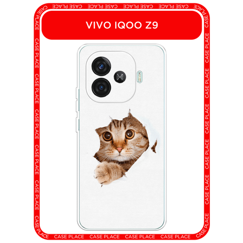 Силиконовый чехол на Vivo iQOO Z9/Z9 Turbo/Neo 10R / Виво iQOO Z9/Z9 Турбо с принтом Кот и бумага