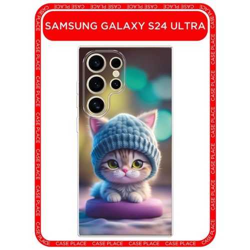 Чехол на Samsung Galaxy S24 Ultra / Самсунг S24 Ultra с принтом Котик в голубой шапочке