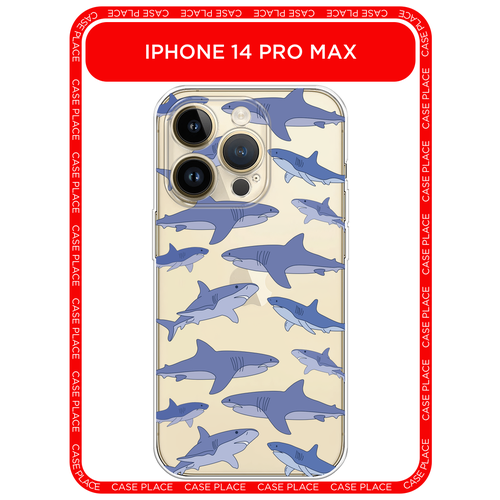 Чехол на Apple iPhone 14 Pro Max / Айфон 14 Про Макс с принтом Акулы паттерн 2, прозрачный