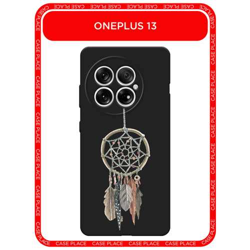 Черный матовый чехол на OnePlus 13 / Ван Плас 13 с принтом Ловец снов с перьями