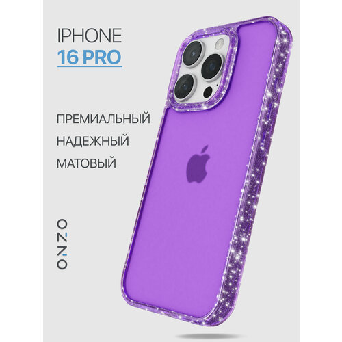 Матовый чехол на iPhone 16 Pro / Айфон 16 Про с блестками по краям, прозрачный фиолетовый