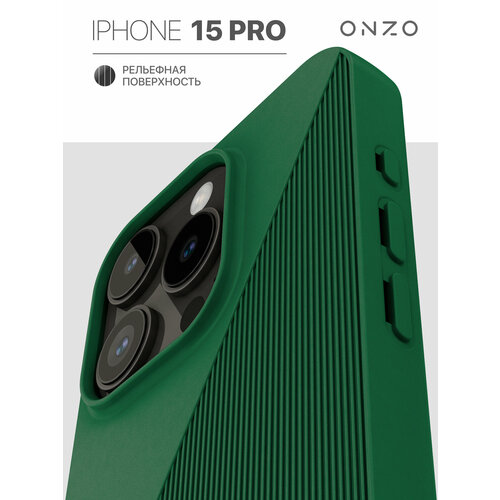 Защитный чехол на iPhone 15 Pro / Айфон 15 Про с ребристой поверхностью, темно-зеленый