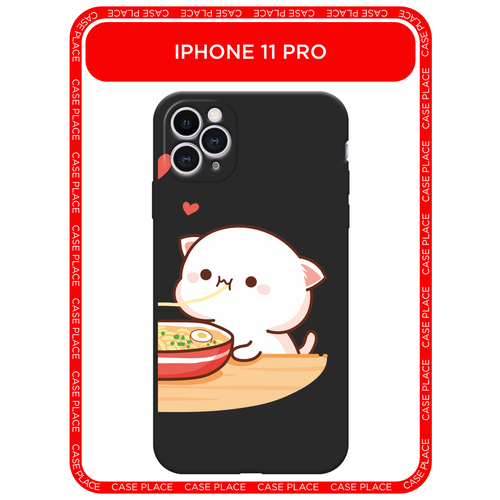 Черный матовый чехол на Apple iPhone 11 Pro / Айфон 11 Про с принтом Белый котик с лапшой