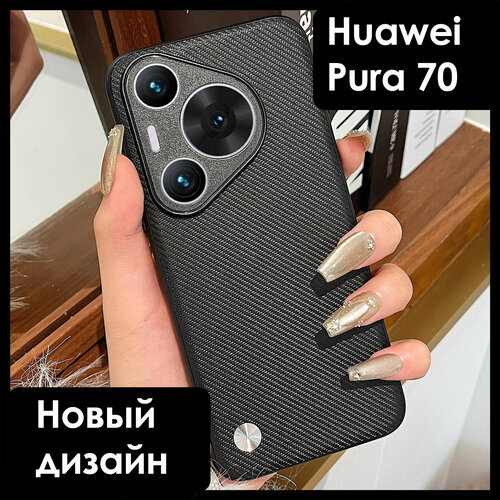 Чехол экокожа на Huawei Pura 70 (Хуавей Пура 70) премиум, цвет кевлар черный