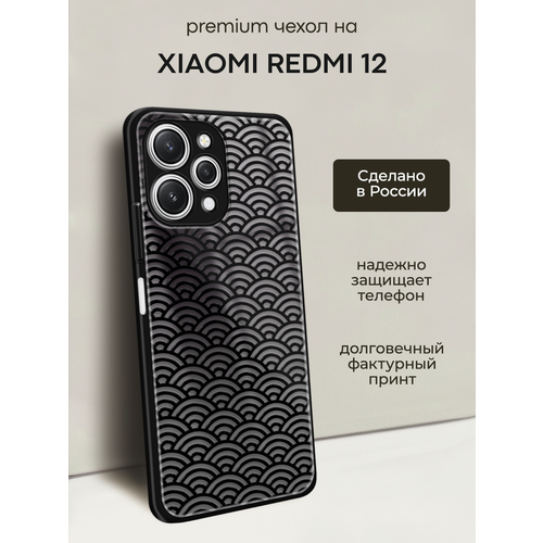 Чехол на Xiaomi Redmi 12 / Сяоми Редми 12 с объемным принтом "Азиатский темный паттерн"